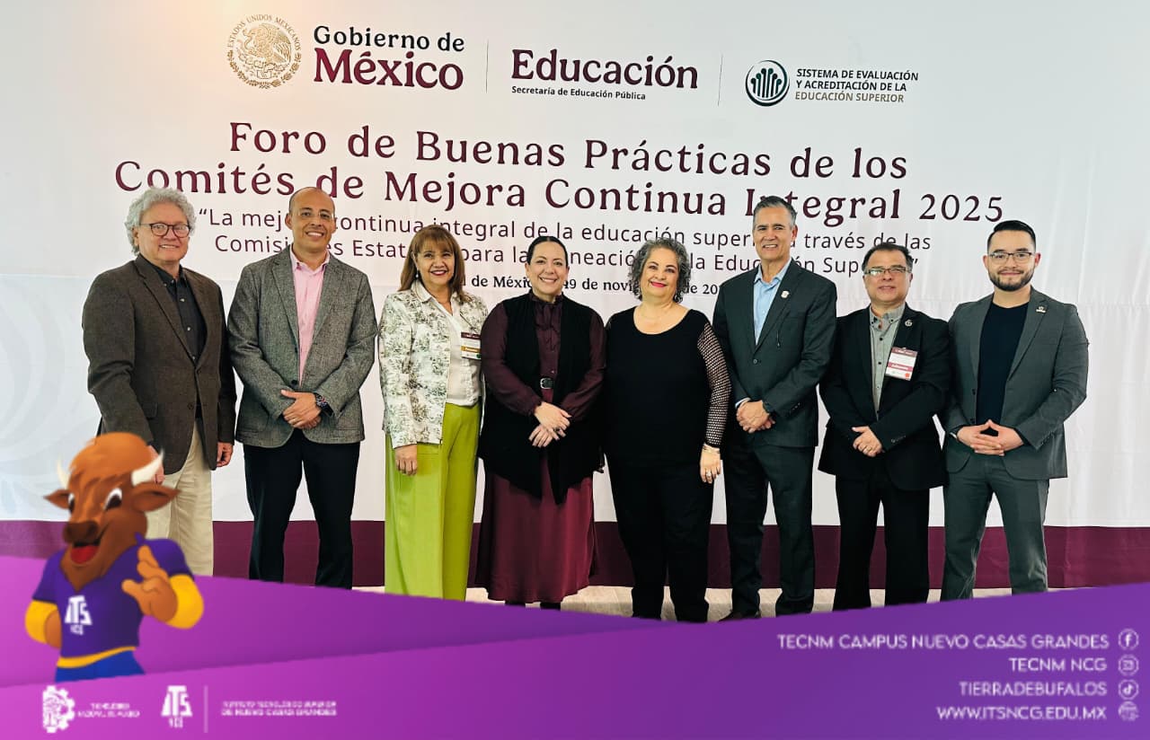 Este 19 de noviembre de 2025, el Instituto Tecnológico de Nuevo Casas Grandes participó en el Foro de Buenas Prácticas de los Comités de Mejora Continua Integral (CMCI) 2025, organizado por el Sistema de Evaluación y Acreditación de la Educación Superior (SEAES) y la Secretaría de Educación Pública. El evento se llevó a cabo en el Centro de Innovación y Desarrollo de la ANUIES, en la Ciudad de México.